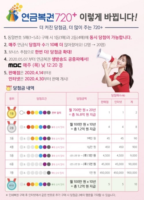연금복권 720+, 당청금·추첨일 변경…매월 500만→700만원으로