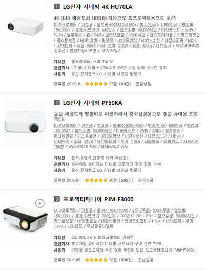 빔프로젝트가 엄청 좋아졌네요. 저두 조사하면서 알게 됐는데...ㅎㅎㅎ
