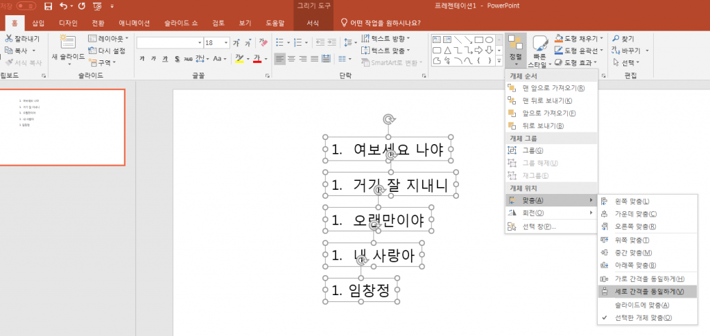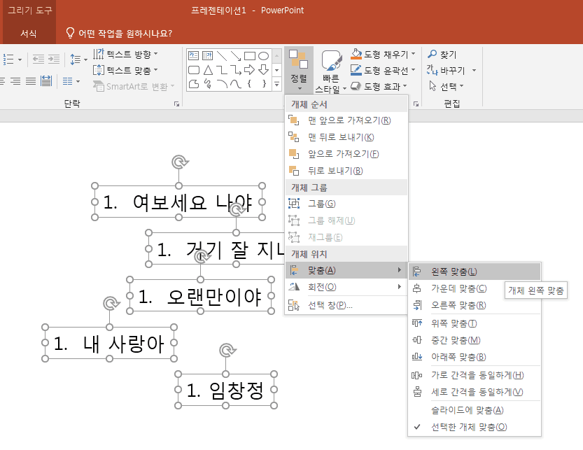 첫번째 소개드릴 PPT 빨리 만드는 방법 은 정렬 기능입니다.