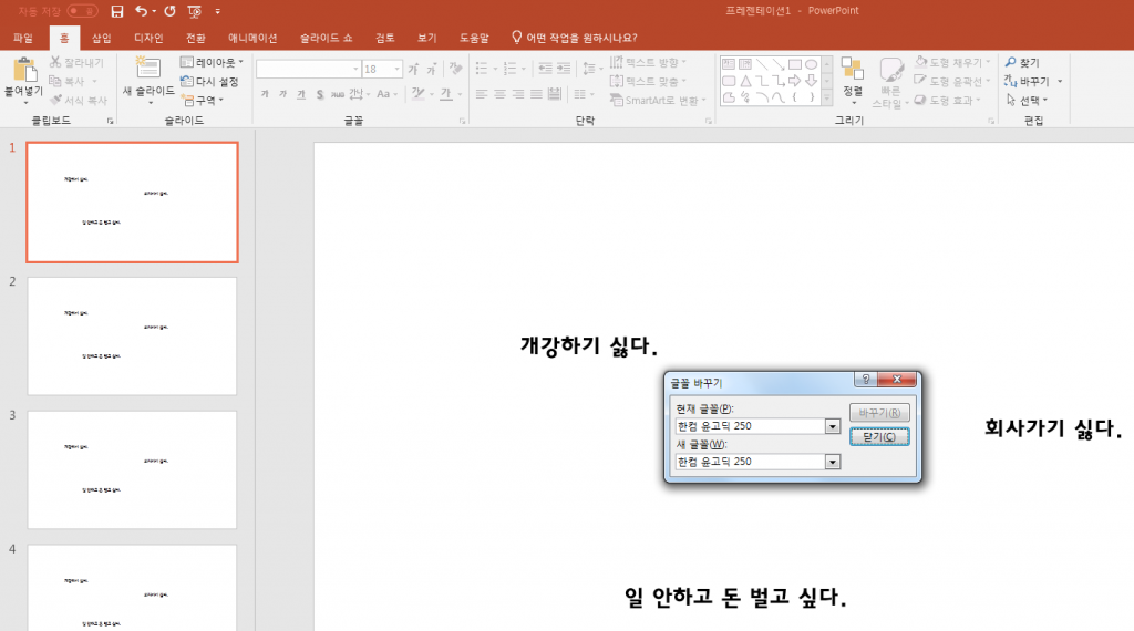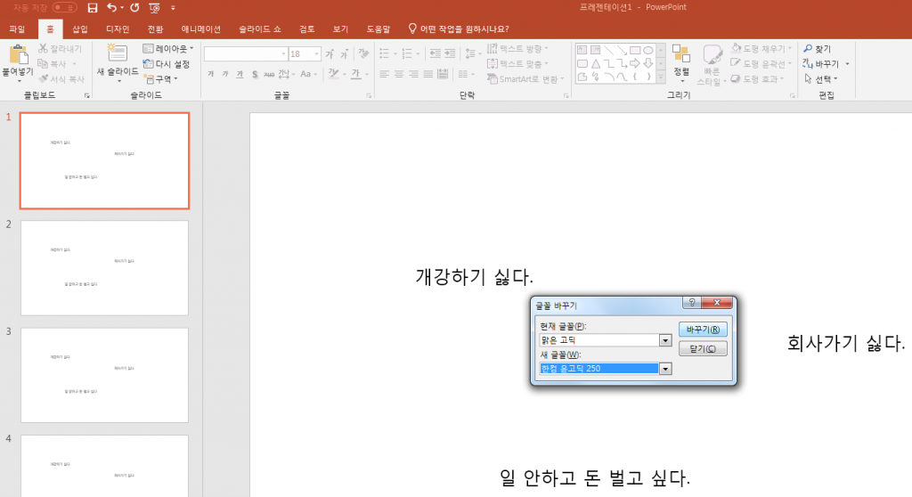 홈-바꾸기-글꼴 바꾸기 클릭해주세요.