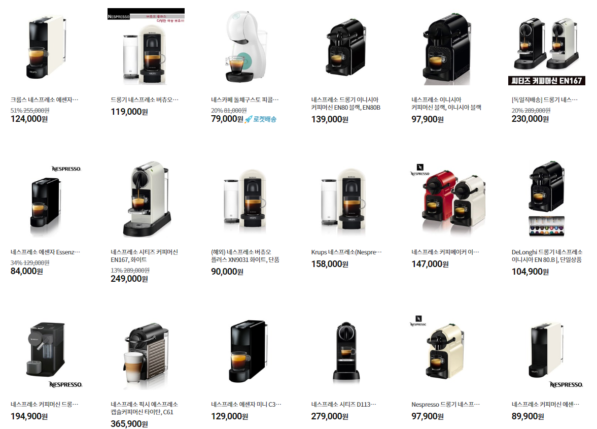 평소 커피를 즐긴다면 요즘같이 집에서 보내는 시간이 많아지고 자주 나갈 수 없는 상황에 커피 머신은 필수품이다. 그중 네스프레소 커피 머신은 전용 캡슐를 사용해 누구나 쉽게 고급 퀄리티의 커피를 맛볼 수 있다. 캡슐은 네스프레소 자체에서 나오는 제품 외에도 스타벅스나 피츠 커피 같은 대형 커피 브랜드에서도 네스프레스 전용 캡슐을 판매하고 있기 때문에 취향대로 구매해보자. 또, 집에서 얼음을 넣어 아이스커피도 만들어 먹을 수 있기 때문에 한번 커피 머신을 사놓아 잘 활용한다면 커피숍에서 쓰는 지출도 줄일 수 있다는 장점이 있다.