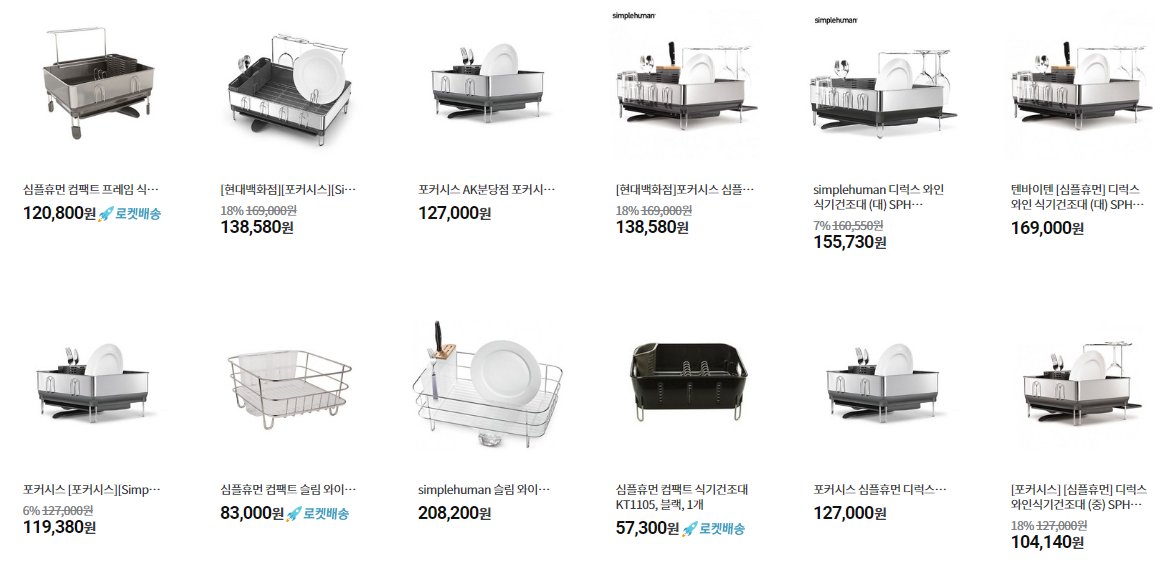 심플휴먼은 주방, 욕실 용품 등 다양한 가전제품들을 판매하는 브랜드로, 심플휴먼의 제품들은 세련된 디자인에 활용도가 아주 높고 잔고장이 적어 많은 고객들의 사랑을 받고 있다. 베스트셀러인 식기건조대는 일반 식기건조대와 다르게 수납공간이 여러 개로 분리되어 있으며 360도 회전 기능이 있는 물이 빠지는 출구가 장착되어 있다. 따라서 빠른 시간 안에 싱크 쪽으로 물기가 빠지고 친수성 코팅이 되어 있어 물때 걱정이 훨씬 줄어든다. 또, 일반 컵과 와인 잔까지 걸어놓을 수 있는 분리대도 포함되어 있기 때문에 아주 편리하다.