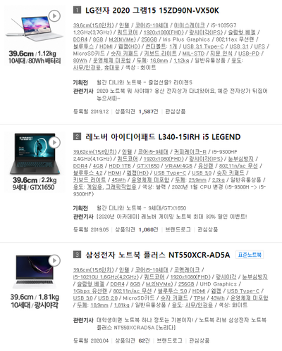 1. LG전자 2020 그램15 15ZD90N-VX50K