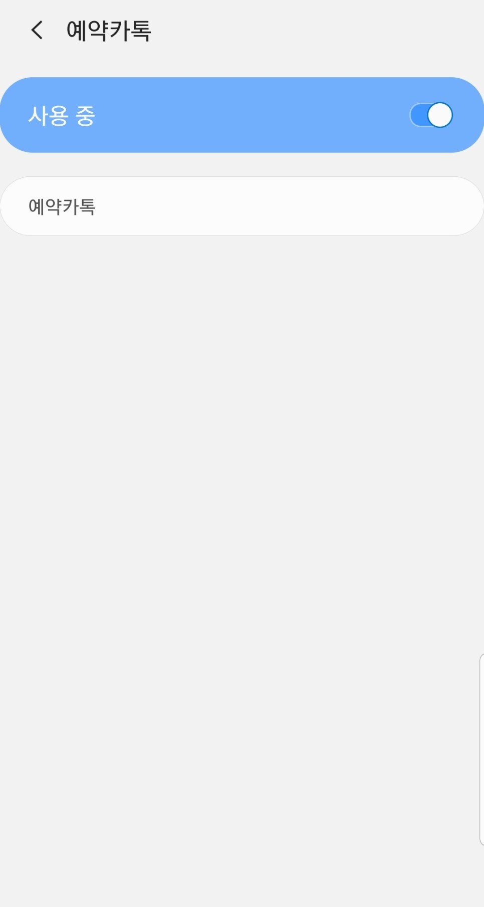 `설치된 서비스`에 예약 카톡이 보이실 거예요. 터치해서 사용 안 함을 사용함으로 활성화해주시면 됩니다.
