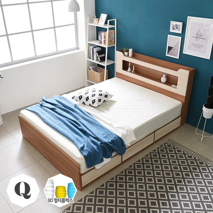 동서가구 스텔라 LED 수납헤드 3서랍 침대 퀸+3D 멀티7존독립매트, 워시그레이 굿퀄굿가성비