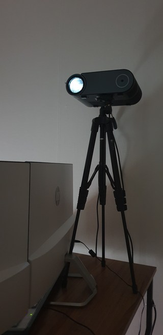 스크린 없이 흰 벽에 그냥 쏜 모습이구요. 방에 벽지가 깨끗하시면 저 처럼 사용하셔도 좋습니다.
