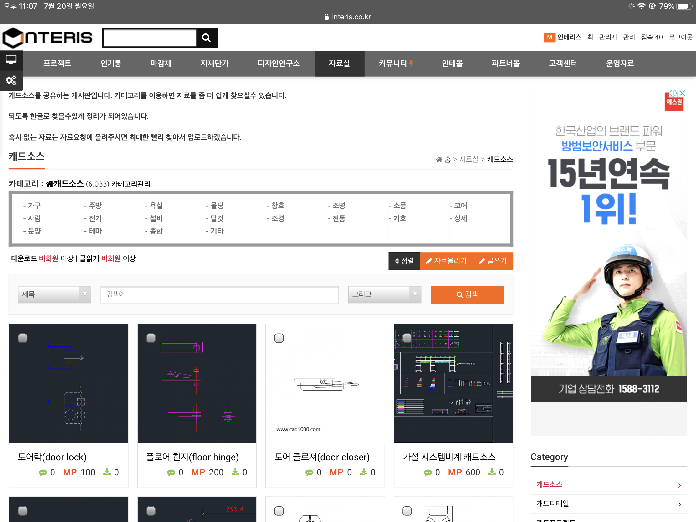인테리스 사이트 접속해서 자료실로 들어가서 메뉴를 선택합니다