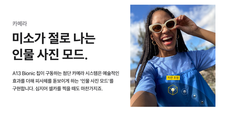 이 놀라운 사진과 동영상 촬영을 하는 이미지 센서가 싱글 카메라는 사실이 놀라운데요, 모두를 놀라게 만든 퀄리티 기반은 A13 바이오닉 칩셋의 프로세싱 처리 성능 덕택입니다. 그래서 4k 동영상 촬영까지 가능하게 만들었습니다.