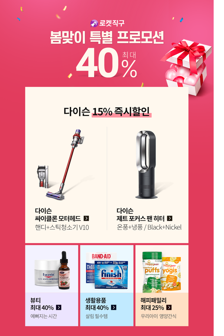 | 로켓직구 봄맞이 특별 프로모션! 최대 40% 할인 (0) | 2020.04.28 |