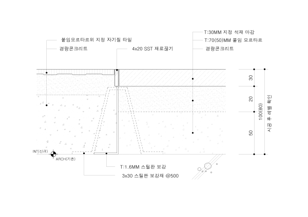 다른 재료가 서로 바닥에서 만날때 아래 그림처럼 재료분리대라는걸 설치합니다.